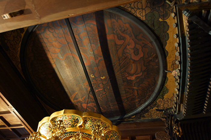 本堂の屋根や幕には葵の紋が入り、本堂の天井には高松藩絵師による龍図が描かれた。